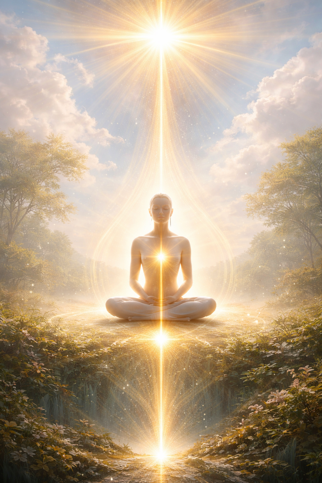 Imaginez un fil d’or, lumineux et bienveillant, descendant du ciel et se posant délicatement au sommet de votre tête. Ce fil, porteur d’énergie positive, s’arrête quelques instants sur le point le plus haut de votre corps. À cet instant, vous pouvez ressentir une douce chaleur se répandre, utilisant la lumière de ce fil pour illuminer votre esprit. En fermant les yeux, laissez cette lumière s’installer en vous, apportant calme et sérénité. Imaginez comment cette sensation s’infiltre dans chaque partie de votre être, apaisant vos pensées et allégeant vos préoccupations.